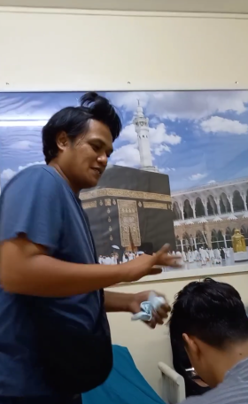 Video PS Mansur Yang Melatah Ketika Sedang Menatarias Merqeen Buat Ramai Terhibur. Ad0i Kena Tonyoh Kepala Semua Arah Dah Si Merqeen Tu. Lawak Lah PS Mansur Ni, Haha !!