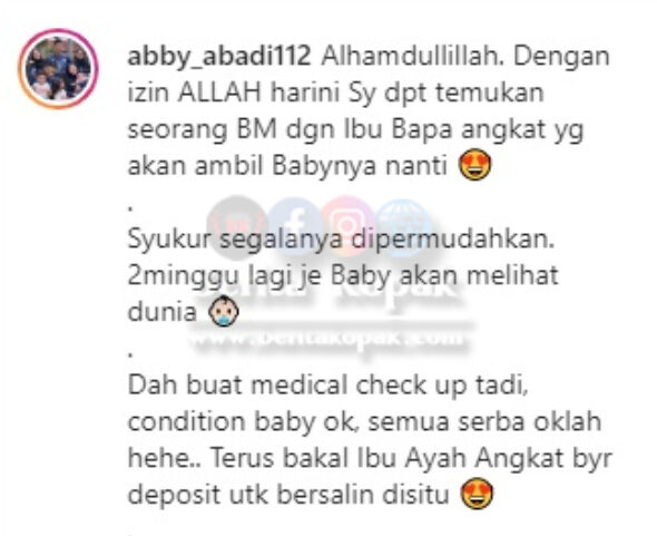 Di bawah ini adalah perkongsian daripada Abby Abadi yang mana salah satu bukti beliau membantu ibu angkat untuk mendapatkan anak angkat.
