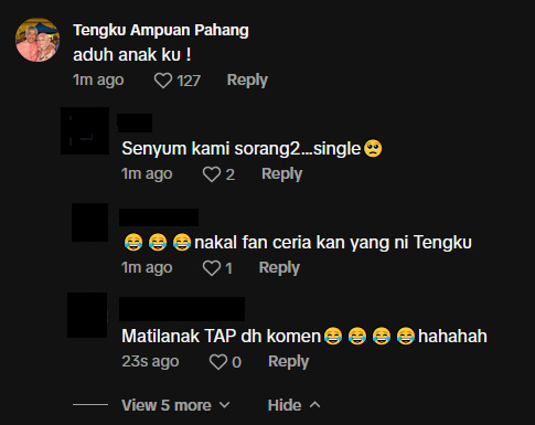 Tak sangka Tengku Ampuan Pahang, Tunku Hajah Azizah Aminah Maimunah terjumpa video ini dimuatnaik di Tiktok. Nampaknya terkantoi lah gelagat Tengku Muhammad ini dengan Bondanya, hehe. Ini komen Tunku Azizah :