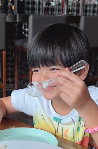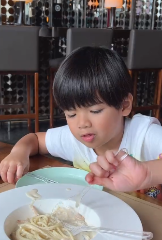 Alahai Jebat, muka tu sudah macam jatuh cinta pandang pertama sangat lah. Ramai yang geram melihat reaksi spontan Jebat itu. Sudah lah muka itu comel, perangai pula cheeky sebegini. Bak komen warganet, confirm berbesan Sharnaaz dan Syamsul 20 tahun lagi, hehe.
