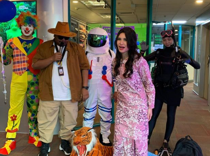 Lain pula Angah yang membawakan gaya bersahaja sebagai seorang pekerja di Zoo. Namun apa yang menarik, Angah telah membawa haiwan mainan seperti harimau, bu4ya, ul4r untuk aksesoris costume hari ni dan memperkenalkan nama harimau yang dijaganya itu adalah Shiba.