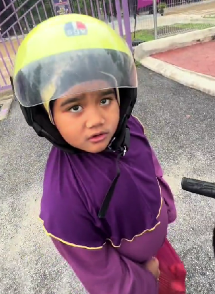 ” Achey parking motor jauh sangat tu, mesti takut juga tu sbb hantar anak lambat, hehe.. Pichang pun pichang lah Tiara, janji pergi sekolah.. “