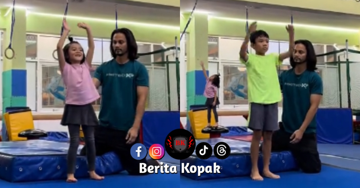 Video Hairul Azreen melatih anak-anaknya, Yusuf Iskandar dan Alisa Aisyah membuat aksi backflip curi perhatian ramai. Wah hebat dua beradik ni buat backflip. Hebat macam daddy lah..