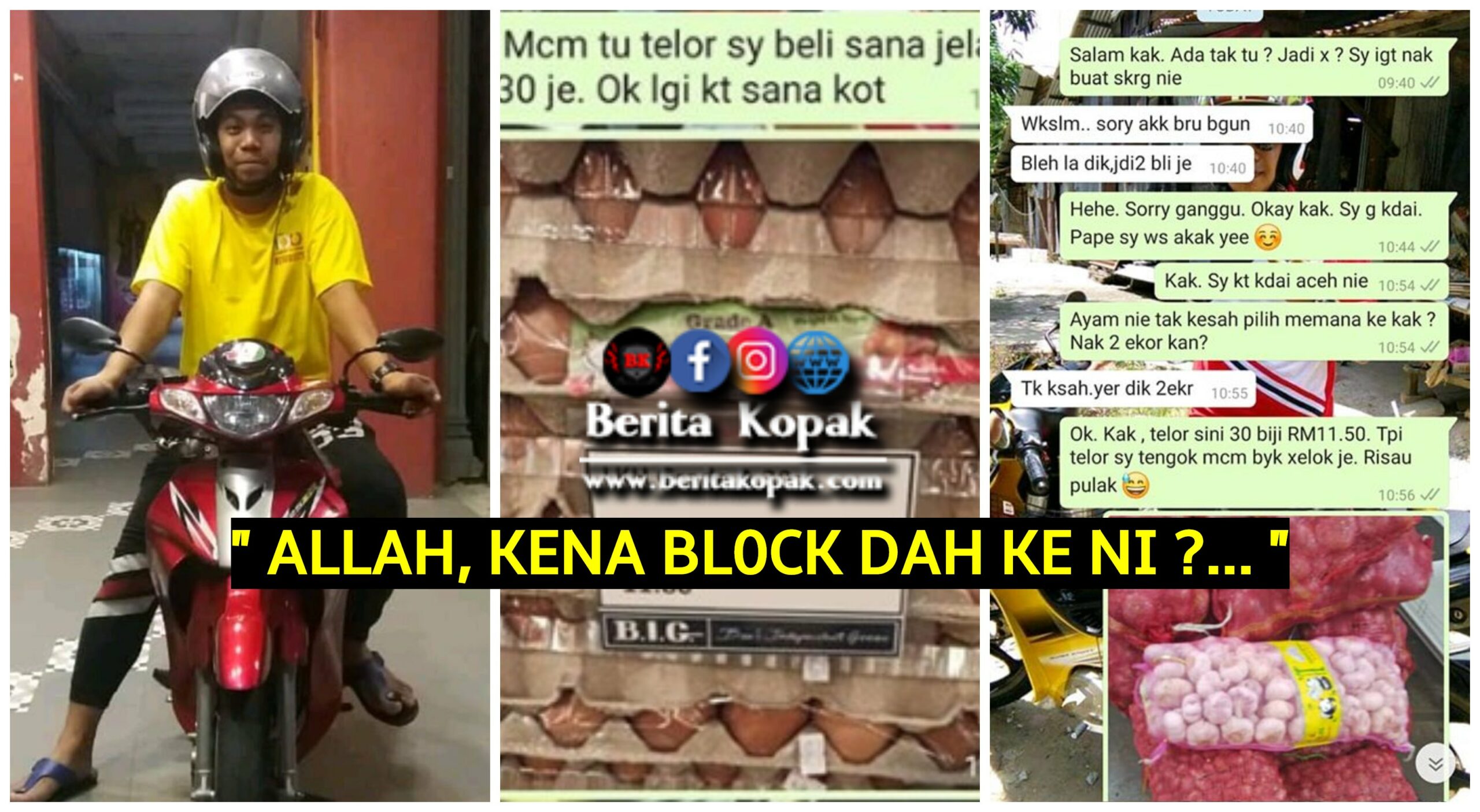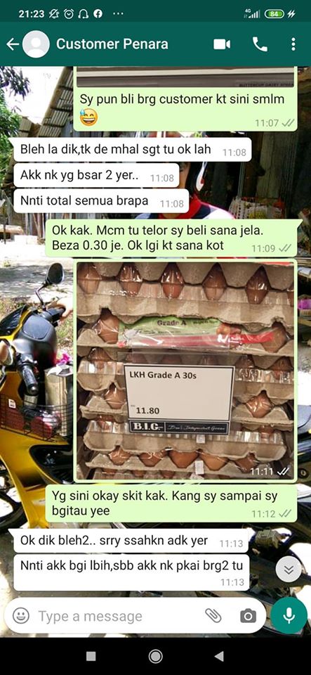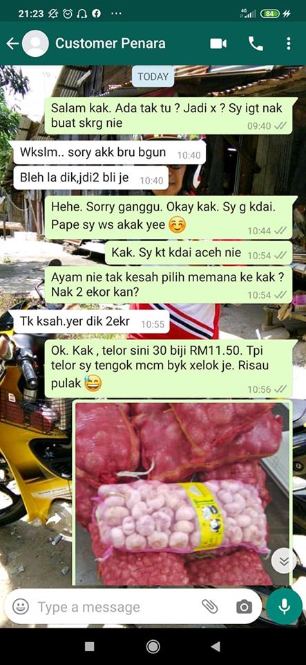 Hairul Nizam juga turut menghantar gambar bawang dan juga memberitahu pelanggannya itu harga telur di kedai tersebut dan memberitahu perasaannya mengenai keadaan telur yang tidak berapa baik.