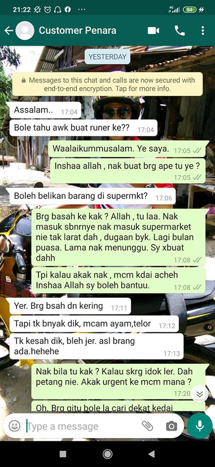 Kisahnya bermula apabila seseorang menghubungi nombornya melalui pesanan aplikasi whatsapp dan meminta khidmatnya untuk membeli barang-barang keperluan di pasaraya.