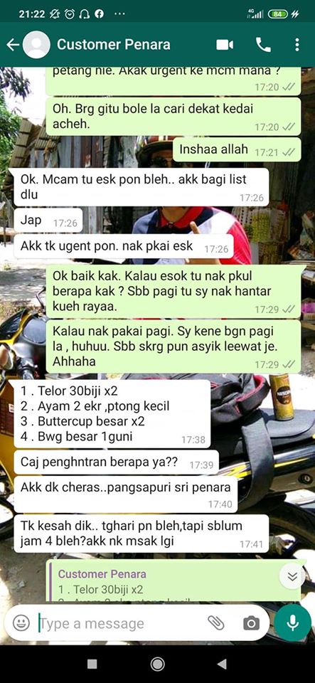 Dapat dilihat di bawah ini pesanan ‘Akak’ ini yang boleh dikatakan agak banyak dan jika dikira secara kasar boleh mencecah seratus ringgit. Menurut ‘Akak’ ini, barangan ini bukanlah dalam keperluan terdes4k dan boleh dihantar keesokkan harinya.
