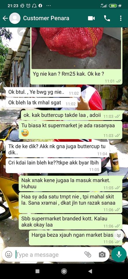Di bawah ini dapat dilihat ‘Akak’ ini memberi kepastiannya mengenai bawang tersebut dan menyetujui harga yang diberitahu. Hairul Nizam juga memberitahu yang di kedai itu tiada buttercup seperti yang telah dipesan.