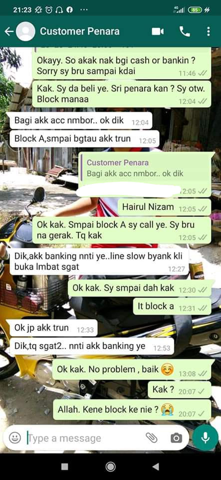 Keesokkan harinya, Hairul Nizam kembali bertanya melalui whatsapp untuk meminta kepastian daripada ‘Akak’ itu sebelum dia membelinya. Dapat dilihat di bawah ini ‘Akak’ ini telah memberi persetujuannya seperti yang dituliskan sebelum itu.