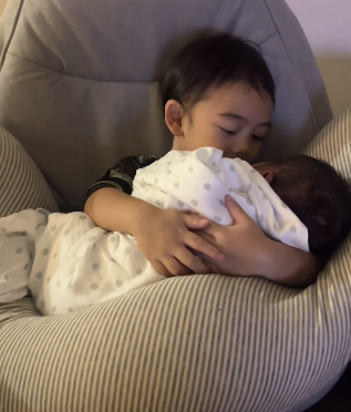 Dayah turut memohon agar semua mendoakan anaknya ini menjadi seorang yang cerdas, bijak dan anak yang soleh. Turut sama dikongsikan gambar anak sulung Dayah, Achbar Muhammad Fahri bersama adik babynya. Sama comel lah adik dan abang ini, dua-dua cinta hati ibu dan baba.