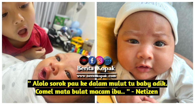 ” Alolo sorok pau ke dalam mulut tu baby adik. Comel mata bulat macam ibu.. ” – Netizen
