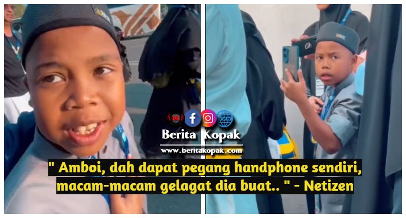 ” Amboi dah dapat pegang handphone sendiri, macam-macam gelagat dia buat.. ” – Netizen