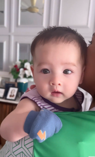 Tersenyum lebar Aryan mendengar namanya dipanggil. Wajah comel Aryan membuatkan ramai warganet yang ger4m. Mata Aryan yang seakan-akan berwarna grey itu juga menarik perhatian ramai. Kata Emma, Aryan sudah genap 3 bulan.