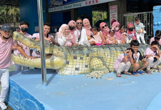 Meriah betul kelihatan keluarga besar ini bercuti bersama-sama, lebih-lebih mereka semua berpakaian sedondon berwarna merah jambu dan wajah masing-masing begitu ceria dan seronok. Difahamkan gambar tersebut diambil di sebuah pusat peranginan di Johor.