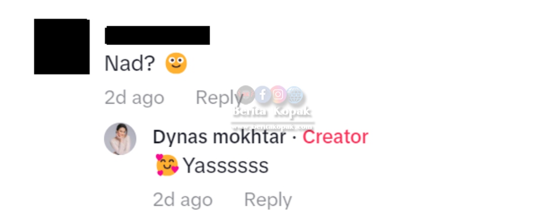 Manakala di ruangan komen, ramai yang meneka bayi ini adalah anak Nad Zainal dan salah satu komen itu Dynas memberikan respon mengatakan benar. Perkongsian video Dynas telah menarik perhatian warganet. Ada yang meluahkan rasa geram melihat kecomelan anak Nad.