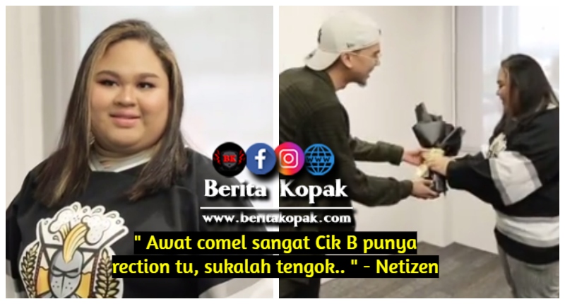 Seolah-oleh begitu terkej0t akan kehadiran idolanya, reaksi Cik B yang tersenyum lebar setelah menerima sejambak bunga itu turut mencur1 perhatian warga netizen. Manakan tidak, sikap cool Cik B dan reaksinya itu dikatakan begitu comel.