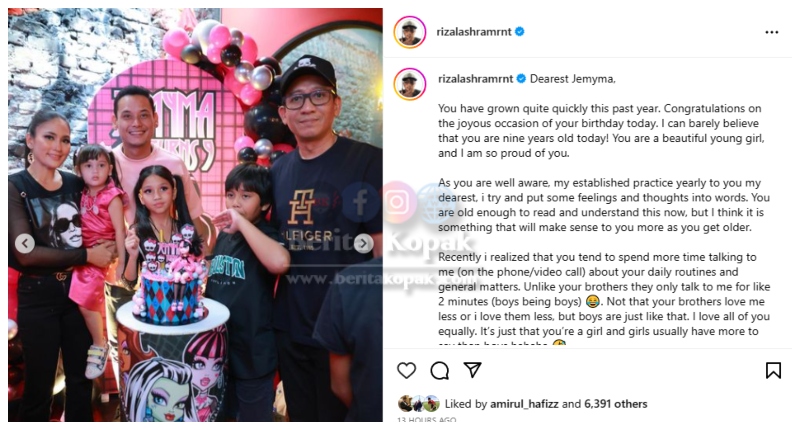 ” Rizal ni kalau setiap besday anak dia mesti caption dia panjang-panjang. Bagus betul.. Happy birthday Girl…untung Jemyma jadi kesayangan daddy..semoga daddy dan anak2 sihat dan happy selalu.. ”