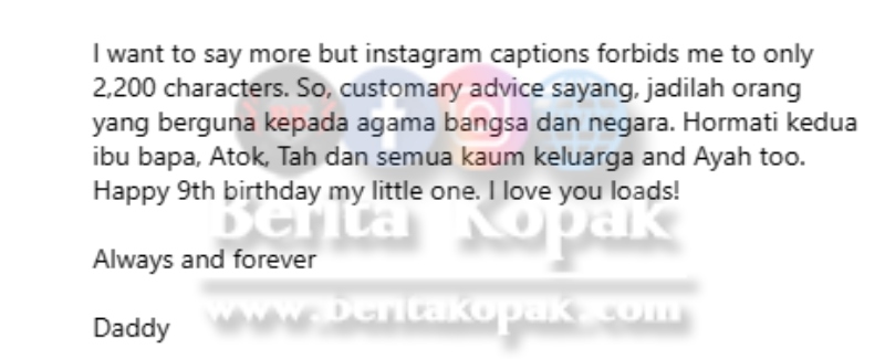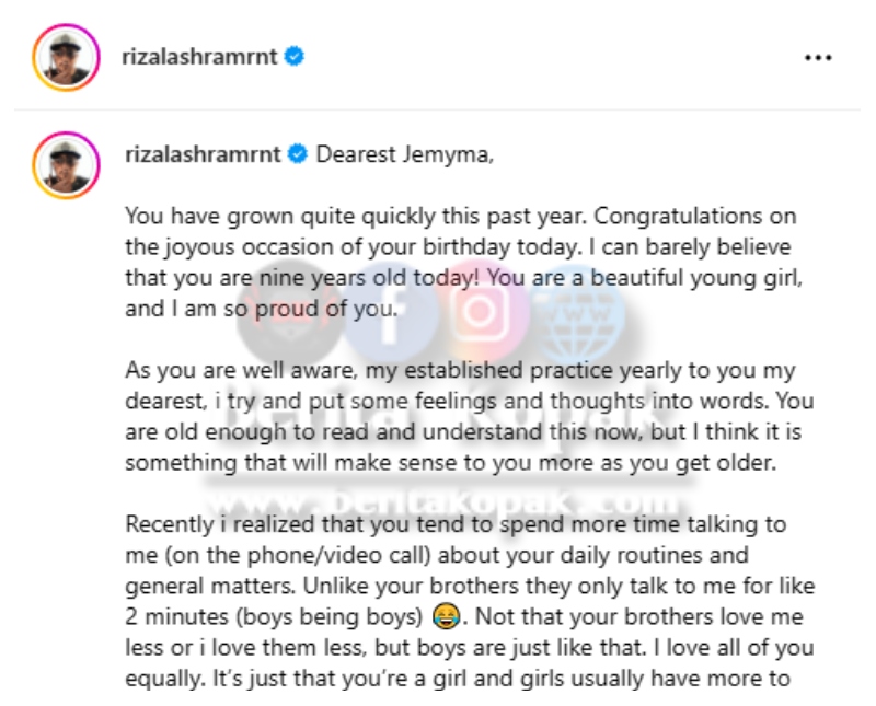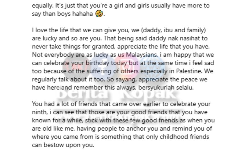 ” For the past few years , kita rajin baca wish2 birthday dari u utk anak2 u. Sgt menyentuh perasaan .. Such a beautiful caption. Happy birthday Jemyma.. You should put all of these Bday wishes into a book.. ”