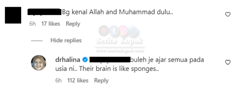Terbaik lah Dr Halina, membalas komen dengan baik dan langsung tidak melenting dengan komen netizen tersebut. Apa-apa semoga baby Muhammad terus membesar dengan baik dan menjadi anak yang soleh buat Dr Halina serta Dr Sheikh.