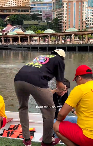 Ilyas bertanyakan berapa banyak wang Ubai yang habis untuk melakukan kej0tan ini dan Ubai menjawab ‘ banyak ‘ sambil tergelak-gelak. Apabila Ilyas menyebut ‘ Sak4i, kita belum kahwin ‘, ketawa terus Ubai. Sampai abang yang membawa bot pun kena sakat dengan si Ilyas ni.