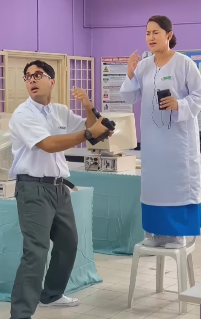 Video Sedutan Babak Lakonan Elly Mazlein Bersama Fikry Ibrahim Dalam Sebuah Drama Buat Ramai Terhibur. Amboi, Bukan Main Gangster Lagi Kak Lina Jadi Budak Sekolah. Fikry Pun Sama Masuk Air, Haha !!