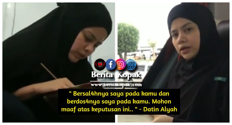 Setelah berfikir sedalam-dalamnya, Datin Alyah akhirnya tampil dengan keputusan tek4d yang buatkan peminat dunia hiburan tersent4k dan terkej0t. Tiada paks4an dari sesiapa, semuanya hadir dari dalam dirinya. Dirinya cuma memohon kemaafan dari seluruh peminat atas kekhil4fan lalunya.