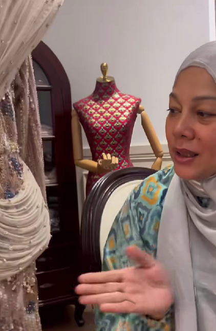 Kedengaran suara Sharifah Shahirah atau mesra dengan panggilan Shiera, memuji busana DS Siti tersebut. Sempat Shiera meletakkan tangannya di bahagian pinggang busana itu untuk mengetahui saiz pinggang DS Siti. Selepas itu, Shiera mengukur pula pinggangnya.