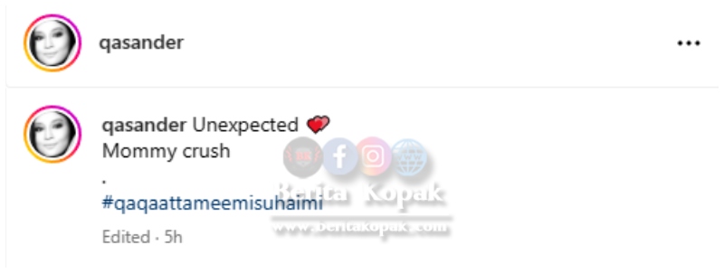 Pendek sahaja kapsyen yang ditulis oleh Datin Norish pada postingnya ini. ‘ Unexpected, mommy crush ‘, itu yang dituliskan. Wajah yang boleh membuatkan ramai yang cair melihatnya. Tentu Qaqa mempunyai ramai peminat di sekolah, segak betul orangbya.