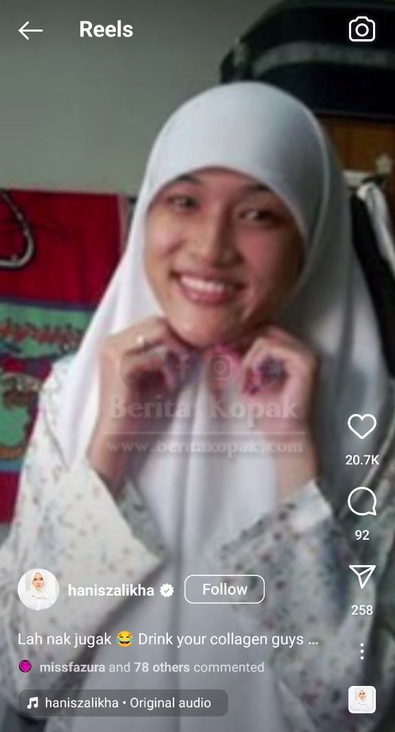 Perkongsian Hanis ini telah menerima lebih 22 ribu tanda suka daripada warganet sejak ia dimuatnaik buat masa ini. Hanis sememangnya memiliki kecantikan semulajadi walaupun tanpa solekan tetap wajahnya nampak cantik dan kulitnya yang halus.