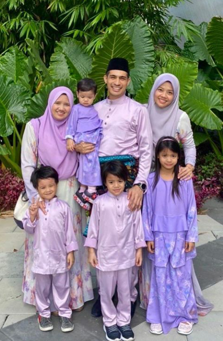 Menerusi akaun Instagram, Ashraf memuatnaik beberapa gambar keluarga ketika menyambut hari raya aidilfitri baru-baru ini. Bertemakan warna ungu, mereka sepakat memakai sedondon dan menyambut bersama kedua isteri. Keakraban mereka dipuji netizen.