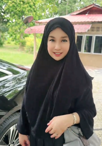 Akiko memakai jubah dan tudung berwarna hitam dilihat sungguh cantik dan manis. Rasanya ini kali pertama Ridz berkongsi penampilan isterinya memakai tudung. Akiko sememangnya sudah cukup cantik dan apabila memakai tudung nampak bertambah berseri.