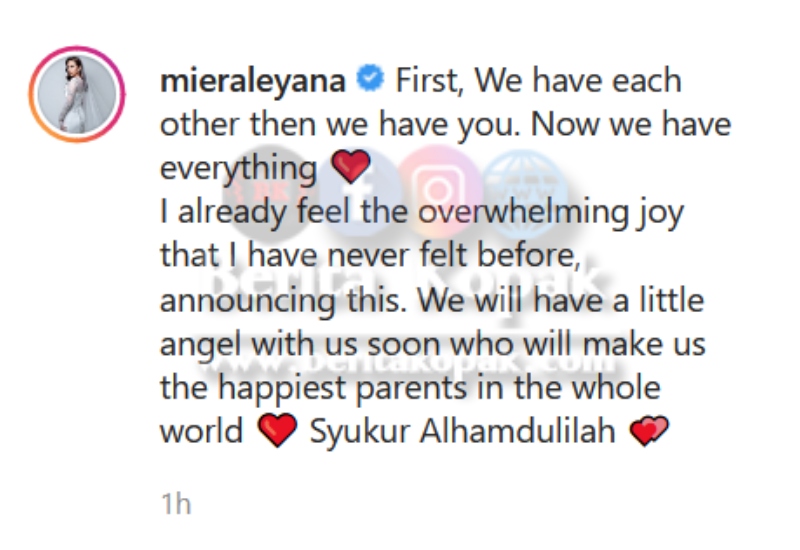 Kami di Berita Kopak ingin mengucapkan tahniah buat Miera dan juga suami. Semoga urusan sepanjang kehamilan dan proses melahirkan anak nanti dipermudahkan oleh Allah. Semoga anak yang bakal dilahirkan nanti menjadi anak yang soleh atau solehah. Amin..