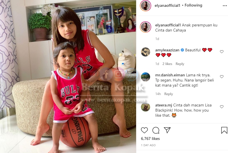 Meninjau ke akaun Instagram Elyana, sekeping gambar dua permata hatinya telah dikongsikan. Dengan kapsyen ‘ anak perempuanku Cinta dan Cahaya ‘, kedua adik-beradik ini dilihat comel dengan berpakaian sukan sedondon berwarna merah.