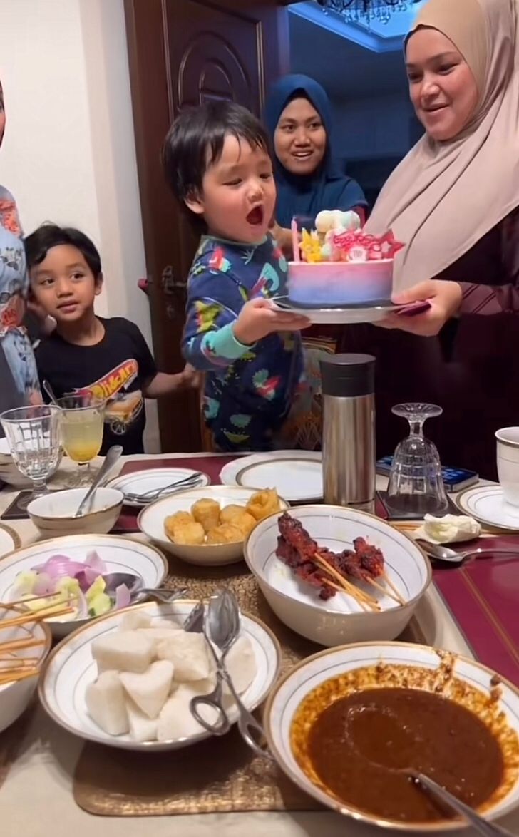 Video Gelagat Comel Anak Dato’ Seri Siti Nurhaliza, Muhammad Afwa Ketika Majlis Sambutan Hari Lahir Kakak Iparnya, Tya Arifin Buat Ramai Terhibur. Eh Afwa Pulak Yang Excited Nak Tiup Api Lilin. Cheeky Betul Muka Tu Masa Dapat Tiup. Mesti Dia Ingat Birthday Dia, Hehe !!