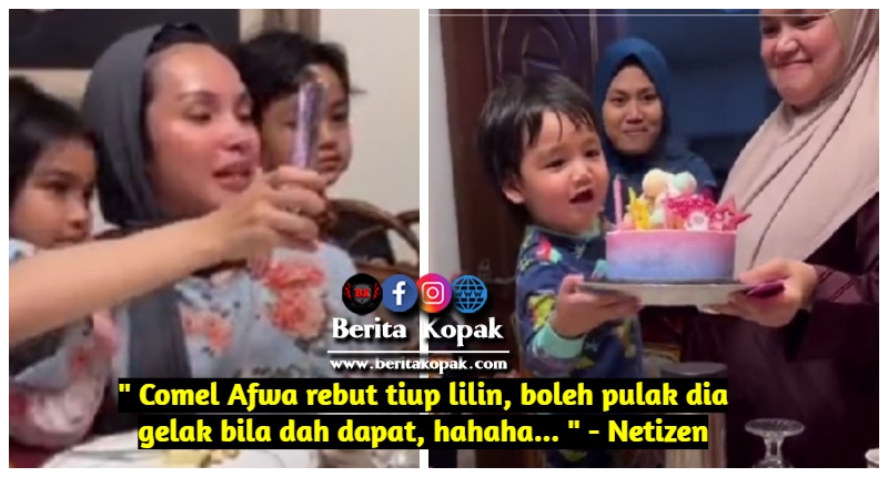 ” Comel Afwa rebut tiup lilin, boleh pulak dia gelak bila dah dapat, haha.. ” – Netizen