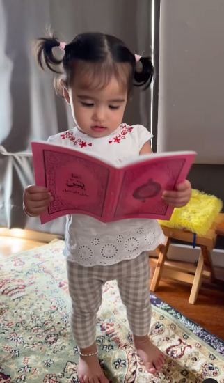 Meninjau ke akaun Instagram Sheila Rusly, perkongsian sebuah video cucunya iaitu Bunga Elhaq telah meraih perhatian ramai. Video yang berdurasi beberapa saat ini memaparkan gelagat Bunga sedang membaca buku Iqra dan menulis.