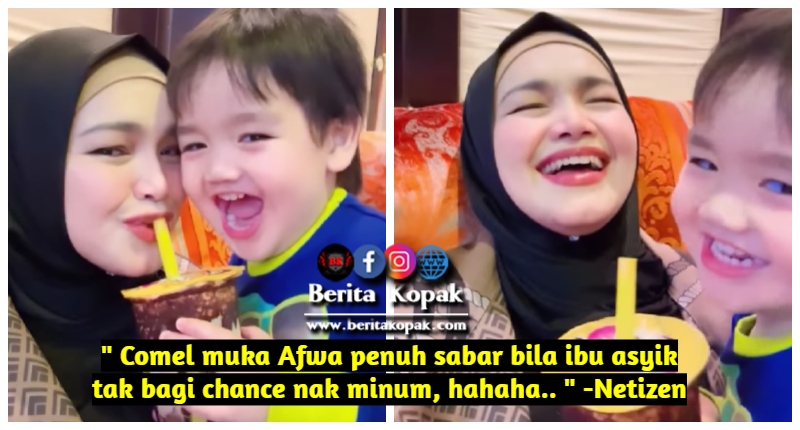 ” Comel muka Afwa penuh sabar bila ibu asyik tak bagi chance nak minum, haha.. ” -Netizen