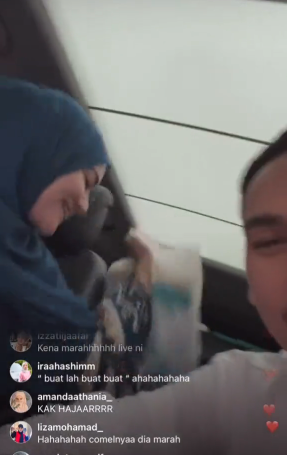 ”’ Hujung-hujung tu sempat eh nak test Hajaar haha. MK semua video senyum je memanjang.. Rajin MK menyakat Hajaar, punya lah pem4lu nasib tak masuk bawah seat haha.. ”