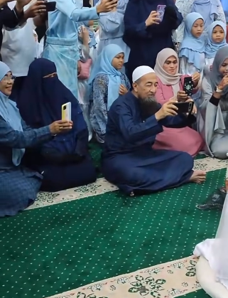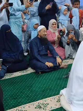 ” MasyaAllah comelnye ustaz duduk depan. Untung masuk dlm keluarga uai. Semoga dilindungi Allah hingga ke jannah.. ”