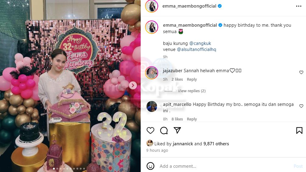 Menerusi akaun Instagram, Emma Maembong telah berkongsi beberapa keping gambar sekitar sambutan hari lahirnya yang ke 32 tahun. Perkongsian ini telah meraih perhatian ramai terutamanya melihat anak-anak Emma yang sudah semakin besar.