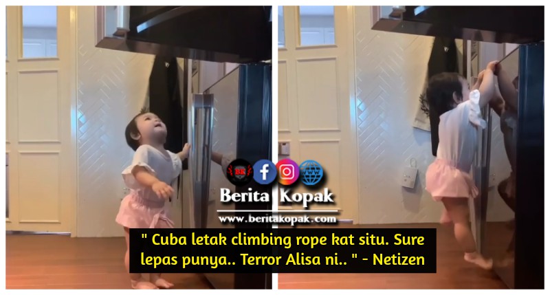 Menerusi akaun Instagram Alisa Aisyah, telah dikongsikan satu video yang menunjukkan aks1 Alisa yang cuba memanj4t peti ais di dapur. Gelag4tnya itu yang dirakam oleh Hanis buat peminat terhibur. Amb0i anak dar4 ni bukan main las4k dia. Kaki tu ger4m betul tengok !