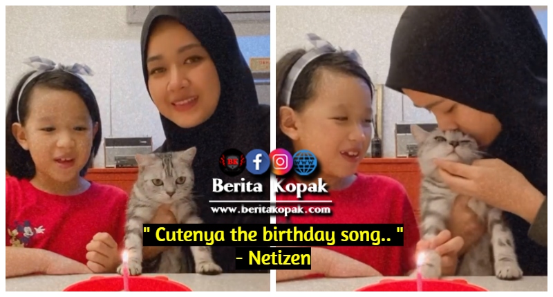 ” Wahh raikan birthday kucing, comel lah reaksi masing-masing dalam video ni. Tone lagu Birthday tu memang rare betul lah, hahahaha.. “