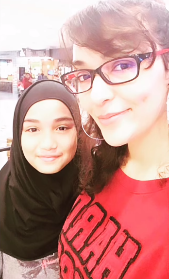 ” Happy birthday to my dear niece… May Allah always keep you safe n happy .. Tinggi dah anak dara ni.. happy besday ariyana.. lamanya tak jumpa dia .. “