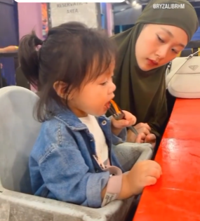 Salah seorangnya memberikan komen negat1f dan turut menggelar Maryam dan Ryzal sebagai stup1d parent. Terkesan dengan komen ini, Ryzal memberitahu tidak semua kedai menyediakan garfu plastik. Tambahan lagi, Rina sudah diajar sejak awal tentang apa yang bahay4 atau tidak ketika makan.