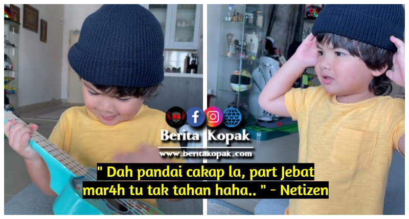 Jebat yang menurut kata babanya ini memetik tali gitar sambil menyebut burung kakak tua. Alahai Jebat, burung kakak tua sampai ke sudah. Muka tu tak pernah tak comel. Memang penghibur hati baba Jebat Jayden ni.
