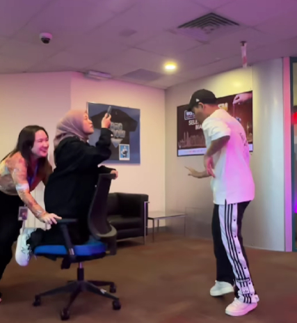 Manakan tidak, rupa-rupanya video menarik Syamel telah dirakam oleh Ernie sendiri. Ernie sedang duduk di atas sebuah kerusi yang mempunyai roda dan mengelilingi Syamel dengan dibantu oleh seorang wanita menolaknya. Sempat Ernie berseloroh memberikan semangat kepada Syamel untuk menari agar video itu akan mendapat ‘fyp‘ daripada akaun Tiktok.
