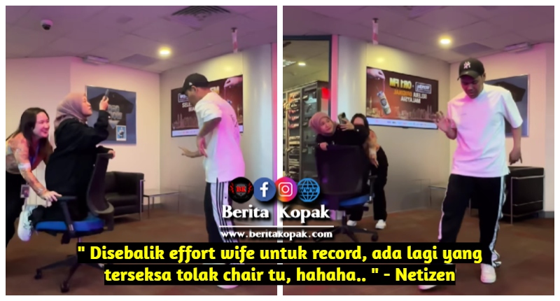 ” Di sebalik effort wife untuk record, ada lagi yang terseks4 tolak chair tu, haha.. ” – Netizen