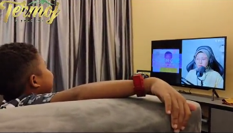 Amir yang menonton diri sendiri di kaca TV kelihatan bwgitu seronok. Tulis gurunya di ruangan kapsyen, Amir seronok dia masuk TV. Tengok orang menangis, boleh pula Amir ketawa melihat diri sendiri. Budak bertuah betul lah Amir ni, dia tak sedar agaknya dirinya sudah viral, hehe.