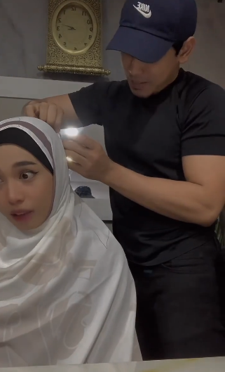Khai juga mencari contoh video cara memakai shawl yang betul dan melakukannya kepada Kyra. Namun sampai ke sudah, tudung Kyra tidak terbentuk dengan elok. Terhibur warganet melihat telatah dua beradik ini. Si abang kelakar dan si adik pula melayan sahaja.