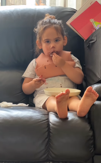 Gelagat Talita sedang makan ini seolah-olah seperti tidak mahu sesiapa meminta aiskrimnya. Habis segalanya disumbat ke dalam mulutnya. Nampaknya Talita kini perlu berdikari sendiri sejak sudah bergelar seorang kakak. Talita kini mempunyai seorang adik lelaki yang baru lahir pada 16 Oktober yang lalu.