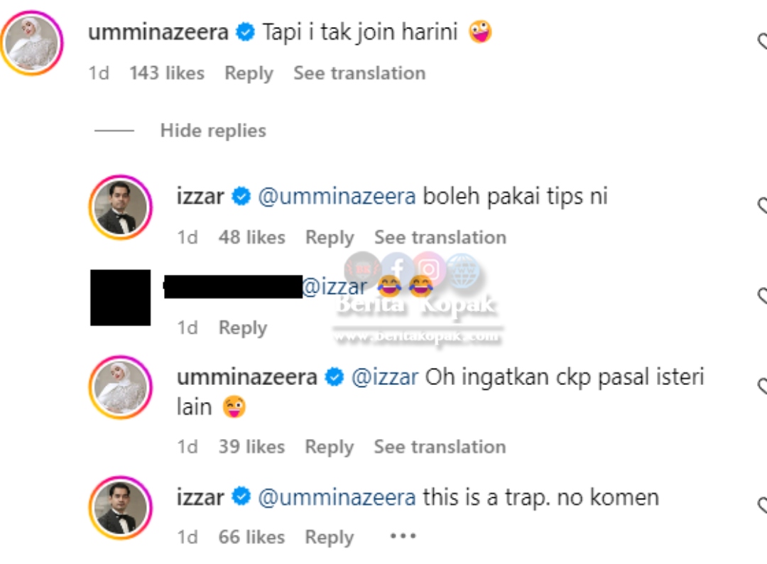 Komen Ummi pun boleh tahan kelakar, sempat lagi perli Dr Izzar. Apa-apa pun, menarik juga tips yang disyorkan oleh Dr Izzar tersebut, semoga ianya bermanfaat untuk semua. Semoga lebih banyak lagi ‘tips’ yang Dr Izzar kongsukan selepas ini.
